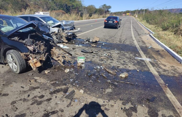 Colisão frontal entre carros deixa duas pessoas em estado grave na BR 135