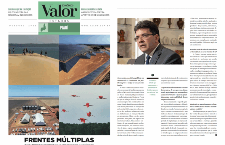 O Piauí ganhou destaque na edição especial da revista Valor Econômico – Estados (outubro/2025), que apresentou o estado como um dos novos polos de crescimento sustentável do Nordeste. A publicação evidenciou os avanços nas áreas de educação, infraestrutura, energia limpa e atração de investimentos – pilares do modelo de gestão adotado pelo governador Rafael Fonteles, que combina políticas sociais com abertura econômica e forte atuação da gestão pública como indutora de desenvolvimento.
