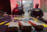 Durante a busca no interior do veículo, os policiais encontraram, no compartimento de bagagem de mão, acima das últimas poltronas do veículo, três invólucros de cocaína, que pesaram 2,767 Kg da substância.