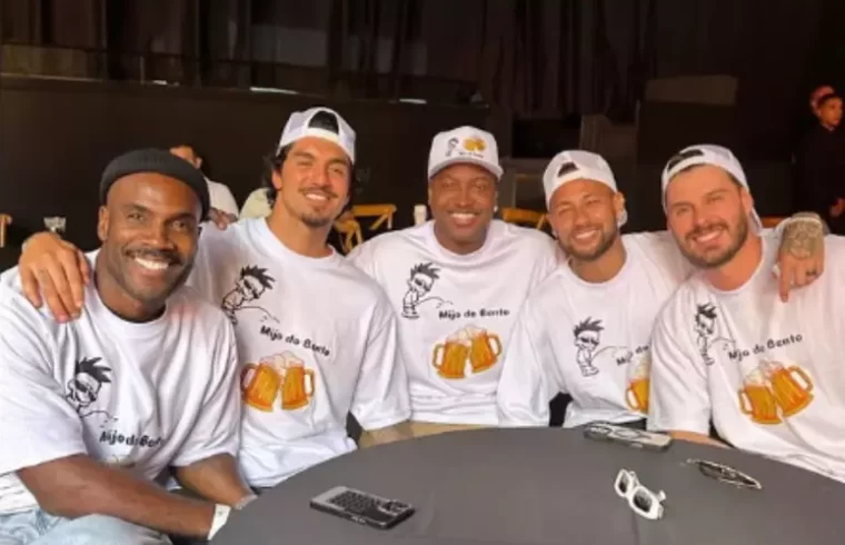 “Tô aqui com meus grandes amigos homens pra celebrar um dos momentos mais especiais da minha vida: a futura chegada do meu primogênito, o Bento! Com muita alegria (e uns goles também 😂), vamos abrir os braços e os corações pra receber esse novo membro da família e do bando! MIJO DO BENTO — porque alegria boa a gente comemora com verdade, com risada, com afeto e com os de sempre do lado!!! 👊🏿 Sou grato demais por cada abraço, cada energia boa e cada brinde pela vida que tá chegando!!! O Bento já é amado, esperado e cercado de amor! Agora é contagem regressiva pro meu maior show: ser pai!”, escreveu.